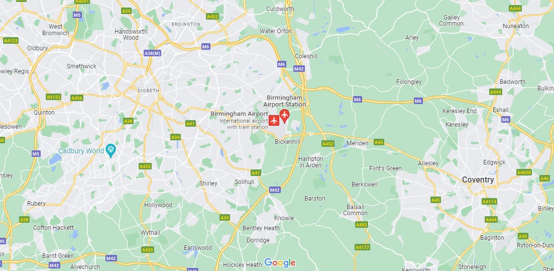 - Location: 7 nautical miles east-southeast of Birmingham's city centre, approximately 9.5 miles to the west-northwest of Coventry, and slightly north of Bickenhill village, located within the Metropolitan Borough of Solihull, England